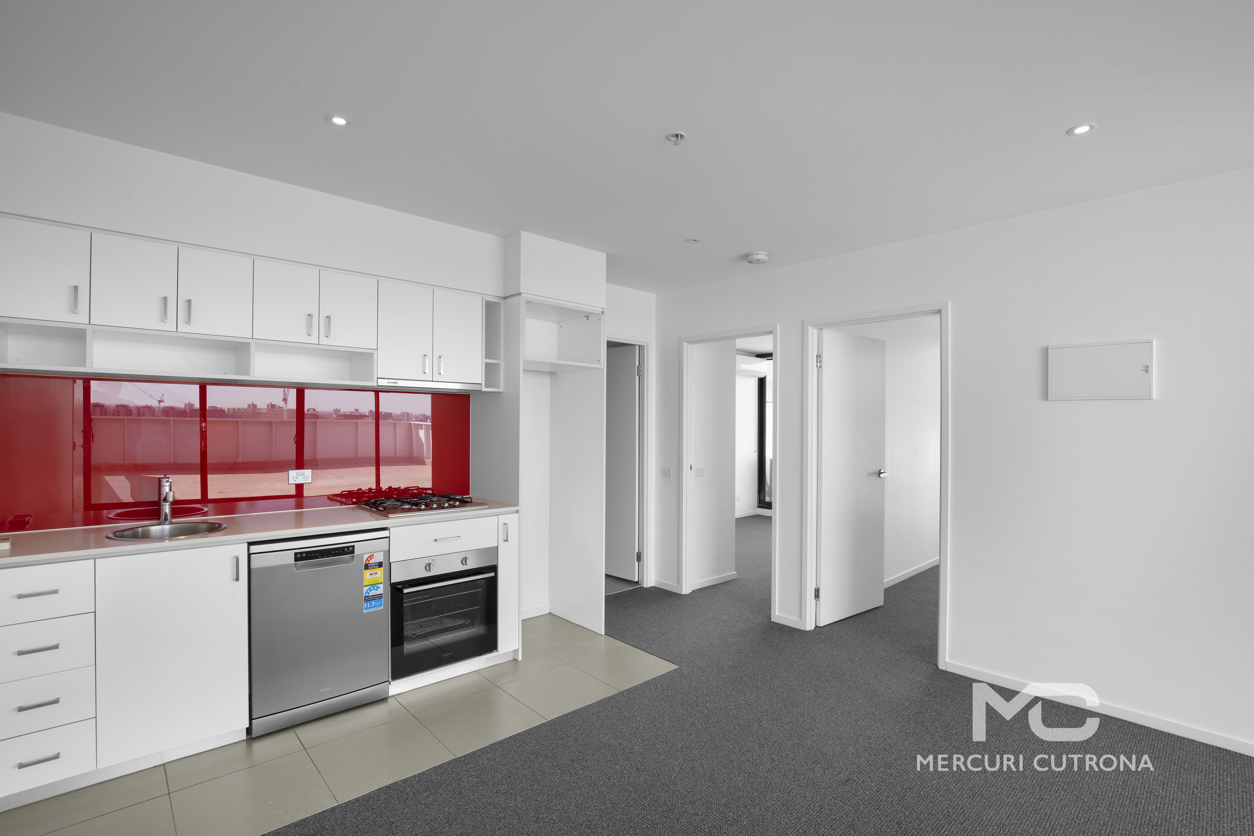 Both bedrooms are generously proportioned with floor to ceiling windows, built-in robes and natural light. The open plan kitchen is appointed with stone benchtops, stainless steel appliances and dishwasher, while the central bathroom offers great storage and a concealed Euro laundry.