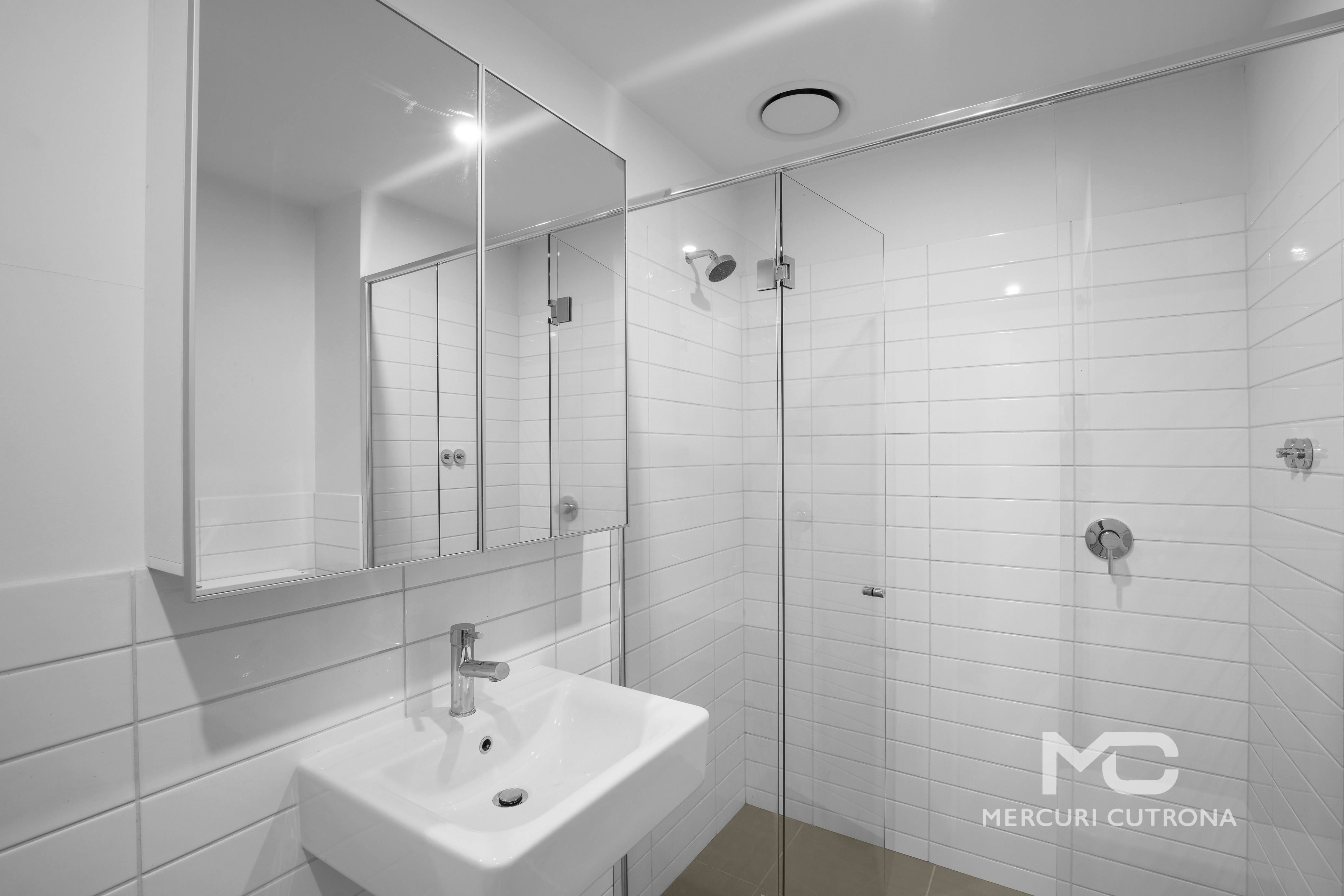 Located on level 9 is this modern 1 bedroom east facing security apartment featuring a traditional entrance hall which leads to the tiled bathroom with storage cupboards and concealed laundry. Walk through to the centrally positioned and well-appointed bedroom which has built in robes and wall to wall carpet in a dark grey tone. The bedroom leads to the living room and galley style kitchen which consists of gas cook top, dishwasher and stone bench top and overlooks amazing district views.